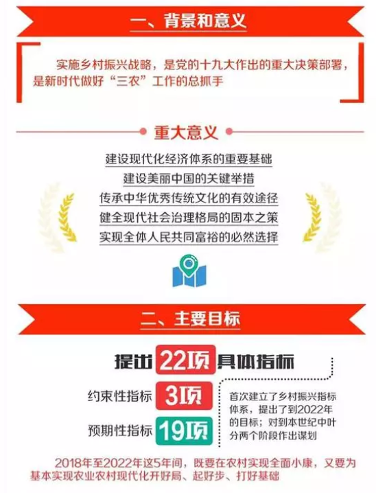 近日,中共中央、國務院印發了《鄉村振興戰略規劃(2018-2022年)》,部署了一系列重大工程、重大計劃、重大行動。這是我國出臺的第一個全面推進鄉村振興戰略的五年規劃,是統籌謀劃和科學推進鄉村振興戰略這篇大文章的行動綱領。