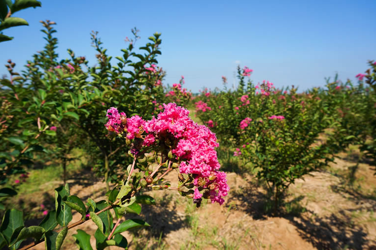紫薇花色鮮艷美麗,花期長,壽命長,樹齡可達200年,熱帶地區(qū)已廣泛栽培為庭園觀賞樹,有時亦作盆景。作為優(yōu)秀的觀花喬木,在園林綠化中,紫薇被廣泛用于公園綠化、庭院綠化、道路綠化、街區(qū)城市等,在實際應用中可栽植于建筑物前、院落內(nèi)、池畔、河邊、草坪旁及公園中小徑兩旁均很相宜。